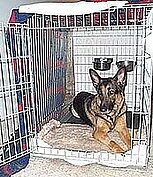 We at CPR recommend the plastic, or airline type of kennel. It is safer for the dogs, and provides more of a true "den" environment that they love. It also keeps in the hair that GSDs are famous for shedding.